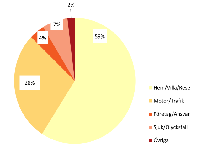 Diagrammet ovan visar inom vilka försäkringskategorier som flest försäkringsbedrägerier uppdagas.